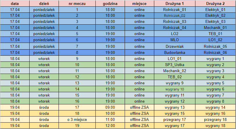Mecze będą grane online 18 kwietnia od 18:00 (wymagana znajomość faceit).